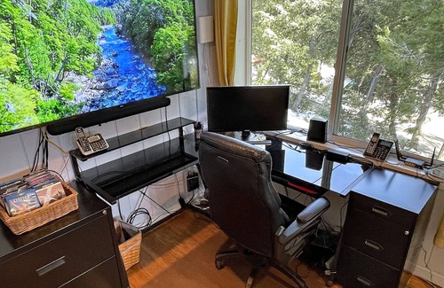 • Enjoy a cozy warm fireplace. Feel radiating warmth from this cabin's high-tech electronic fireplace (no firewood needed). New High Technology electric fireplace has flames that look truly real and you can feel the radiating heat.
