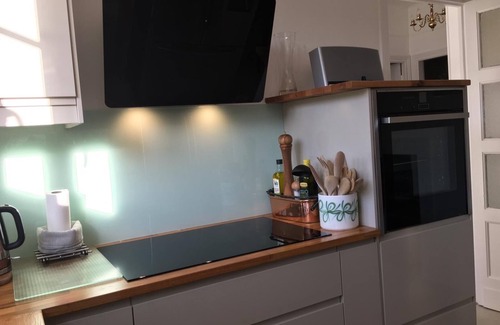 Our Town house has plenty of free parking right in front. Comprising 3 floors, the 1st floor includes all common areas (kitchen, dining room, sitting room, shower room, W.C.) and a bedroom with a King-size bed. On the 2nd floor is a bathroom and 3 further bedrooms each with Super-king beds. There is a quiet, sunny courtyard to the rear, perfect for dining al fresco and relaxing with a glass of Champagne with friends.