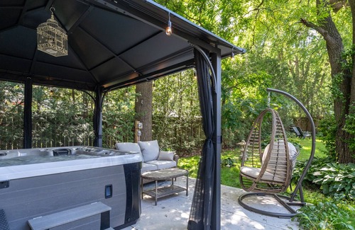 Outside you will find a secluded patio, hot tub, gas BBQ, garden furniture, yard games, parking and small pond. There is a beautiful Victorian porch with plenty of seating to enjoy a glass of wine or two.