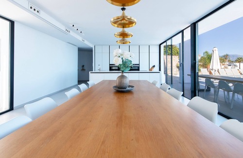 The 2-storey villa consists of a large living room, a very well-equipped, open-plan kitchen, 6 bedrooms as well as 7 bathrooms. It can therefore accommodate 16 people.