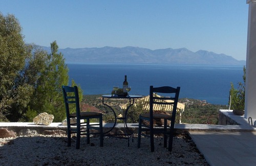 The house was built in 2013 in traditional Greek brick construction and shearing stands on a 4500m2 large, idyllic situated plot overlooking the sea. The landscape around the house is dominated by olive groves and is an absolutely quiet location. The property is easily accessible via a paved or well-developed concrete and gravel road from our point of view with each car. After feedback from some guests a rental of an SUV would certainly not wrong.