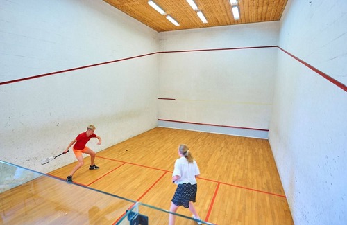 Layout: Ground floor: (hallway(toilet), open kitchen(dining table, hob, electric kettle, coffee machine(filter), combination microwave, dishwasher, fridge-freezer), Bedroom with bathroom(2x single bed, bath tub, shower, 2x washbasin), pantry, fireplace, seating area) On the 1st floor: (bedroom(2x single bed, balcony), bedroom(2x single bed, balcony), Bedroom with bathroom(2x single bed, bath tub, shower, 2x washbasin), bathroom(shower, washbasin), toilet) washing machine, garden, garden furniture, sun loungers, parasol, swimming pool(private), swimming pool(shared with other guests), iron