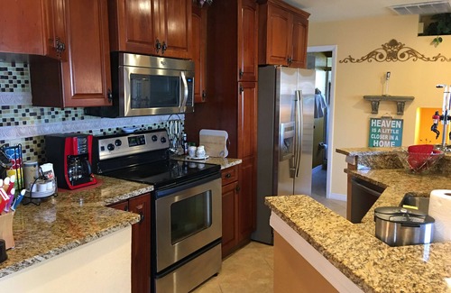 Enjoy the benefits of having the largest lakefront view in the neighborhood, Come enjoy grilling on the lake watching the friendly neighbors waving to you passing by on boats during the sunset. Sit down on the patio during the night watching the stars and when its time to relax get comfortable with 2 queen size beds only to be awakened by the wonderful smell of your Keurig coffee maker in the morning.High speed wireless internet and Roku tv in every room.
