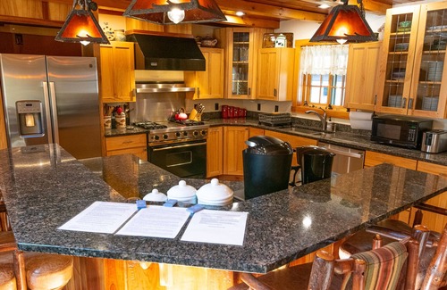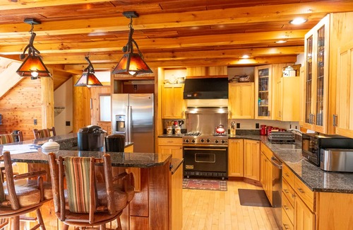 This gorgeous 8 bedroom, 5 bathroom lodge sleeps 16 in beds and in addition has a crib. The house is 500 feet from our own sandy beach on Tupper Lake which can be accessed by our foot path or a private road. Our beach features a large fire pit, a grill and a large lean-to with picnic table, beach chairs and life jackets and a small parking area. Our lodge has all of the comforts one would want in a vacation: a gourmet kitchen, jacuzzi, radiant heated floors throughout, ductless air conditioning, a home theater, a large great room with a wood-burning fireplace, a sun room, an exercise room, a game room, a children's play room, very comfortable bedrooms, an expansive deck with another charcoal grill offering amazing views of Tupper Lake and the mountains.