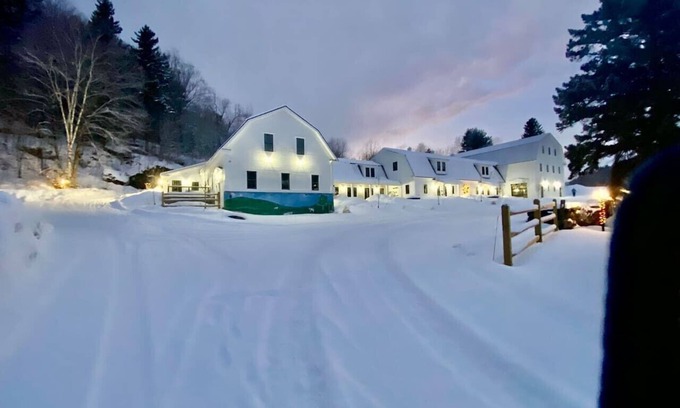 Wilmington VT 7.8 miles to Mt Snow, Vast Trails & Lake Whitingham 4 Seasons of FUN Biking, Hiking, Skiing, Snowmobiling, Golf, Boating & Antiquing. BRAND NEW Luxury Rustic-Chic rear walk up unit constructed in a landmark barn. Primary King bedroom. Kitchen, dining & living room with fireplace with full over full bunk in living area. and private deck overlooking tranquil back yard. Laundry. Less than 2 miles from Shaw`s Market, Walgreens, Dunkin and Town with shopping & Dining