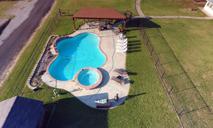 You can enjoy the beautiful Sunrise and Sunsets in a rural setting and yet pamper yourself with modern day amenities all around the resort style ranch home. At nights, you can do star gazing to enjoy bright and clear stars while roasting the smores by the fire or while cooling off in the pool. This home is tastefully curated for you to Unplug, Relax & Recharge! Guests are welcome to roam around our 26 acres, but make sure to bring your boots and bug spray to stay safe!