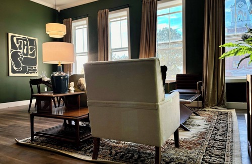 Experience modern comfort in a historic setting! Nestled in a beautifully restored 1871 building, 514 Archer offers stunning courthouse views, luxury finishes, and a perfect downtown location—ideal for wedding guests, business travelers, or a relaxing getaway.