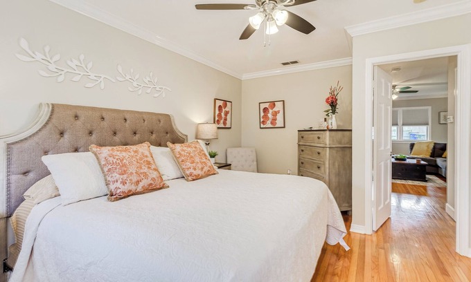Forget your worries in this spacious and serene space. Featuring separate dining room with work desk, full kitchen with gas stove, large living room and bedroom. You will enjoy private parking as well as your own courtyard area. This home is steps from Lake Hollingsworth. This apartment is connected to a larger home which has a connecting locked door. There maybe guests in the other apartment during your stay.