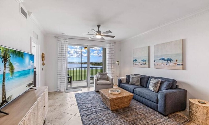Welcome to your luxury 2BR/2BA condo in Babcock Ranch! Enjoy lake & golf course views, stunning sunsets, and two golf memberships to the 18-hole Babcock National course. The cozy space features 2 queen beds, perfect for a small group of guests. With amenities like AC, WiFi, and a fitness room, you'll feel right at home. Access resort-style amenities: pools, clubhouse, fitness center, spa, tiki bar, and walking/hiking trails. Features include a full kitchen, free covered parking, Wi-Fi, in-unit laundry, and private balcony. Near Founders Square & 40 min from Fort Myers Airport. Rental agreement & golf transfer fee required.