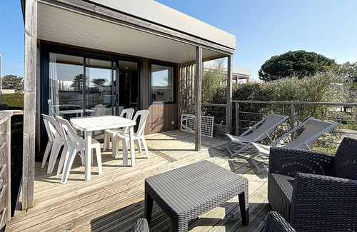 Luxury 2-Bedroom Mobile Home with Heated Pool, Gym & Near Beach in Jullouville is located in Jullouville-les-Pins. Luxury 2-Bedroom Mobile Home with Heated Pool, Gym & Near Beach in Jullouville provides accommodation, featuring Balcony/Terrace, Security/Safety, Wellness Facilities, among other amenities. This House features Balcony/Terrace, Security/Safety, Wellness Facilities, to make your stay a comfortable one.