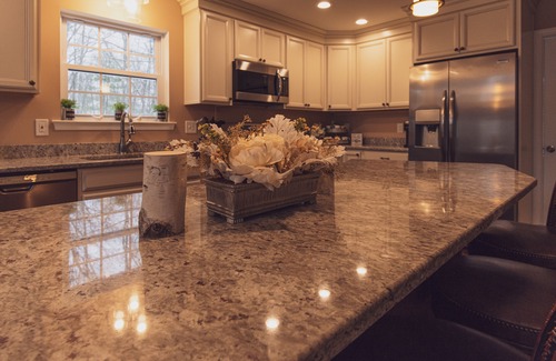 The second floor, with main entrance, exhibits a large living room with gas fireplace and a 65” TV, a chef’s kitchen with granite countertops and an 8 foot island perfect for gathering, and a dining room with an extra large table that seats up to 12 people with benches. The 1st of the two master bedrooms has a luxury Marriet bed king size mattress, TV and a private master bathroom with shower. The second floor further has a serene one bedroom with a comfy queen bed.