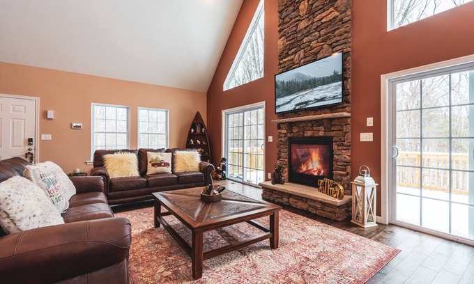 Welcome to Eagle Rock Retreat, a luxurious and spacious private chalet in the heart of Masthope Mountain Community. This 3 story, 3,800 square foot new construction home, boasts 5 large bedrooms and sleeps 12 guests comfortably. The open floor plan allows for an airy, relaxing retreat with high ceilings, Brazilian hardwood floors and large windows with plenty of natural light. The large private deck off the second floor reveals beautiful panoramic views of nature. There is gas grill with propane line that makes it easy to cook up your favorite barbecue. Further, the 6 person Jacuzzi, which is accessible from the first floor, is strategically placed under the deck below for further privacy and accessibility in any kind of weather.