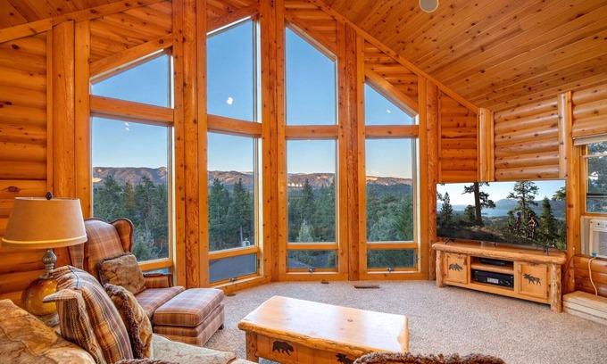Luxury 2400 sqft Log Cabin! Panoramic views, game room, tiki bar, & Pets! | Cabin in Big Bear City