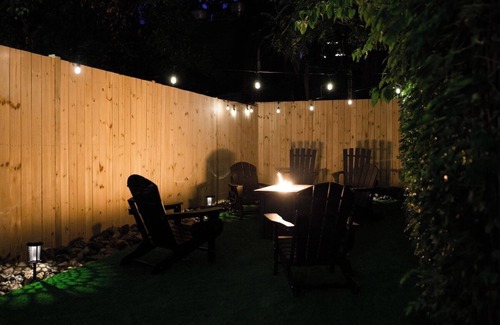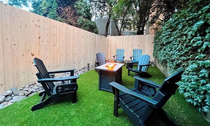 One of the highlights of this row home is the large outdoor deck space. Step outside and bask in the fresh air as you soak up the sun or enjoy al fresco dining on the patio furniture. The deck also features a grill, perfect for hosting a delightful barbecue cookout with your loved ones. As the evening sets in, gather around the fire pit, share stories, and create lasting memories under the starry sky. Our solar lights come alive at night so you can continue to enjoy outside even after the sun sets.