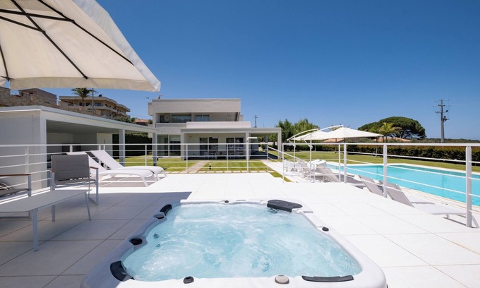 Luxury 3 bed villa with pool & Jacuzzi is located in Rodi Milici. Luxury 3 bed villa with pool & Jacuzzi provides accommodation, featuring Security/Safety, Kitchen, Pool, among other amenities. This Villa features Security/Safety, Kitchen, Pool, to make your stay a comfortable one.