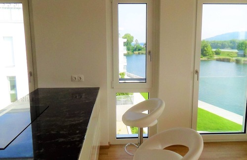 The stunning property has a dreamy 50 square meters living salon with a direct exit to the terrace and 260° view over the skyline of Vienna, the Viennese wineries and mountains, Danube - the second biggest river in Europe, the beach and all the cruises and ships coming to and leaving Vienna. The design apartment has three bedrooms, spacious open kitchen overlooking the beach, dining area with bar board, two bathrooms with shower and with bathtub, as well as two toilets. The apartment is on the beach, near the city centre, art and culture, parks and the airport (25min). The apartment is ideal for people loving the extra special highlight and quality of life, romantics, amazing views and only one of its kind feeling and experience. Couples, families with children and business travellers will have memorable time even spending only a day or longer at this unique place in Vienna.