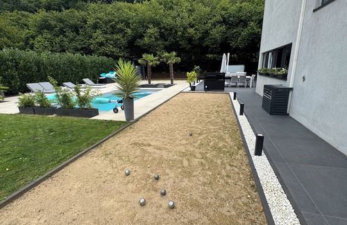 Luxury 3-bedroom villa with jacuzzi and pool is located in Aubange. Luxury 3-bedroom villa with jacuzzi and pool provides accommodation, featuring Balcony/Terrace, Security/Safety, Fireplace/Heating, among other amenities. This Villa features Balcony/Terrace, Security/Safety, Fireplace/Heating, to make your stay a comfortable one.