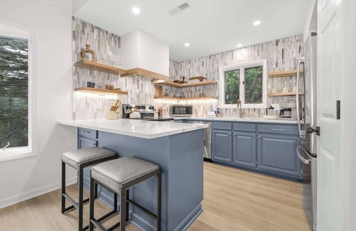 We just finished an extensive remodel and we are very happy to offer modern bathrooms, wet bar, drink cooler, fresh kitchen with all appliances, and top of the line touches and features throughout.
