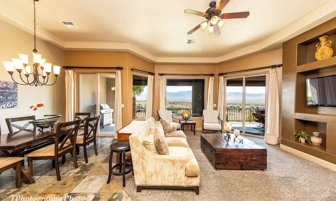 Luxury, 4+ Bedroom, 4 Bath Home on Golf Course with the Best View in Mesquite! is located in Mesquite. Luxury, 4+ Bedroom, 4 Bath Home on Golf Course with the Best View in Mesquite! provides accommodation, featuring TV, Fireplace/Heating, Barbecue/Outdoor Cooking, among other amenities. This House features TV, Fireplace/Heating, Barbecue/Outdoor Cooking, to make your stay a comfortable one.