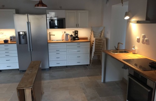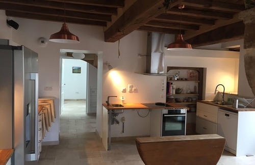 This is a very comfortable house for 8 people, with a private swimming pool. Although it is an old, stone-built farmhouse it has been modified inside to create a modern space, well-equipped for relaxing, cooking and eating. The indoor kitchen is large and has sufficient facilities - three ovens, three sinks and two hobs - for several people to cook together easily. The house has a terrace overlooking the pool and garden, with two large sofas, a dining-table for 10 and an outdoor kitchen. There is a good wifi signal, with a decent download speed, throughout the house and garden.