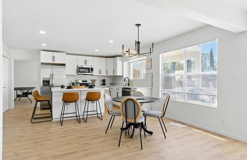 Make yourself at home in this fabulous 4-bedroom Albuquerque retreat with private pool! With 1 king bed, 4 queen beds, a cozy futon and over 3000 sqft of living space, this house is perfect for families or groups. 3 living areas, 2 story home with game room! Air Hockey table, Poker Table and Pool, this home is a true entertainer's dream home! Enjoy the convenience of a laundry area, workspace and WiFi. Two full bathrooms ensure everyone has space to freshen up. Kickback, relax, and enjoy everything ABQ and our house has to offer!