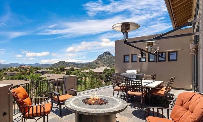 LUXURY RETREAT: 4BR/3.5BA Home in Prescott Arizona, Sleeps 10+. This home offers privacy and has magnificent panoramic views of Sunrise and Sunset. Perfect Retreat for Families or Large Groups.