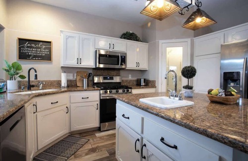 This exquisite property boasts an array of amenities that cater to your every need. With four beautifully appointed bedrooms and three bathrooms, you can comfortably host up to 10 guests. Enjoy your time together in the heated swimming pool or unwind in the hot tub under a starlit sky. The bright and airy living spaces feature modern decor, a fully stocked kitchen for preparing meals, and entertainment options like a game room with a pool table and a 75-inch smart TV. Additionally, high-quality mattresses in each bedroom ensure that you and your guests will wake refreshed and ready for the day’s festivities.
