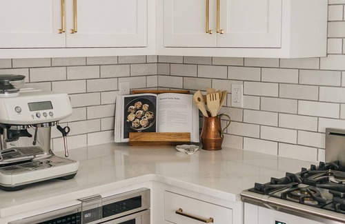 * Appliances - Breville 4-slice toaster, BlendTec blender, electric citrus juicer, hand mixer, electric pancake griddle, waffle maker, crock pot, electric Hayden tea kettle, Instant Pot