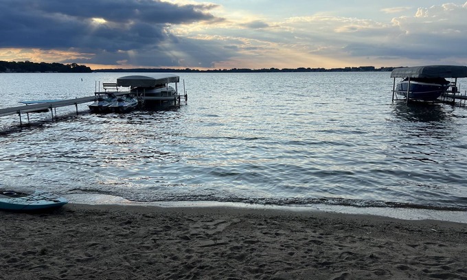 Bayside Beach Home is a family-friendly luxury retreat featuring stunning views of the lake and spacious accommodations to sleep 15. The cozy yet stylish home offers 52 feet of private sandy beach, a sprawling deck, outdoor Solo Stove, a 36" Blackstone Griddle, and a Traeger smoker. Inside, enjoy a wood-burning fireplace, theater area with 75” TV, and an oversized, fully-stocked chef’s kitchen. Located in a charming small town, Bayside Beach Home will provide memories and experiences that will last a lifetime!