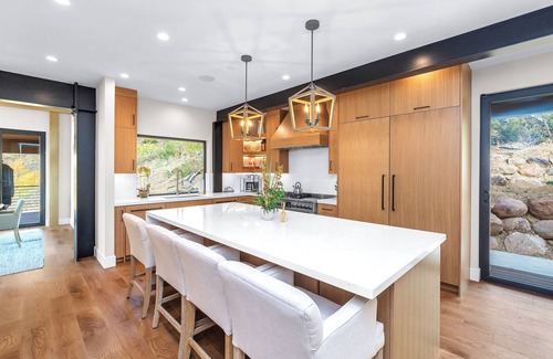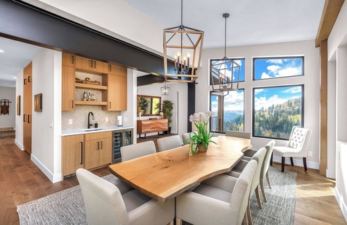 Step into an immaculately designed home, where tall ceilings and a spacious family room offer breathtaking views of the Sundown ski lift and the canyon. The full kitchen, complete with an 8-foot island, is ideal for family gatherings, and the huge fridge/freezer and separate wet bar provide ample storage for all your groceries and drinks. The kitchen is stocked with basic cookware, utensils, and glassware, but if you need something specific, just ask!