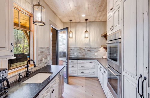 • Kitchen & Dining: The gourmet kitchen is fully equipped with high-end appliances, perfect for preparing anything from a simple snack to a lavish dinner. Enjoy meals in the elegant dining area, or take your food outside to the deck and dine al fresco while taking in the beautiful lake view.