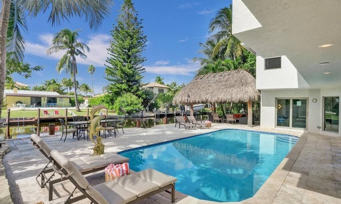 Luxury 5-bedrooms 4-bathrooms waterfront home with heated pool and Tiki Hut | House in Deerfield Beach