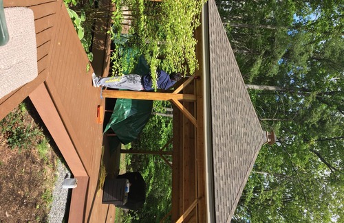 Outdoor covered 20’x20’ Gazebo with bed swing, grill, dining area and couches (not used in Winter)
