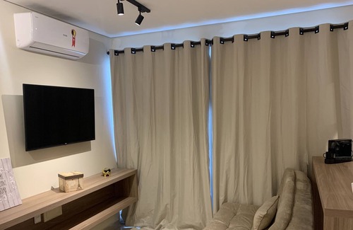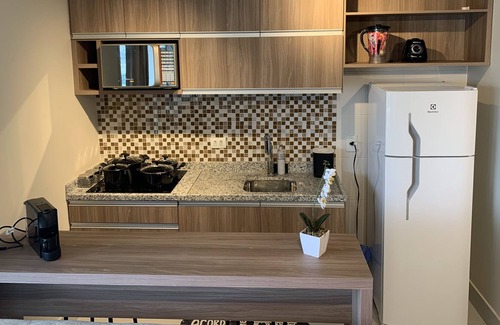 Beautiful apartment, located in Campo Belo next to Congonhas Airport, with whirlpool, heated pool, gym, sauna. Complete apartment with bed and bath linen, kitchen utensils, smart tv, Wifi internet, cable TV, 01 double bed, 01 double sofa bed, frostfree refrigerator, coffee maker, iron, hair dryer, parking space , 24 hour concierge and security, selfie check in with electronic lock.