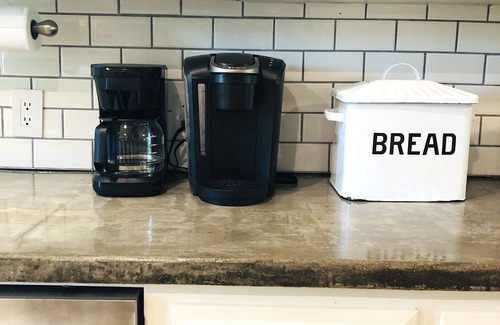 The kitchen is updated with all high-end, stainless steel appliances, and concrete countertops. There are pots and pans for cooking as well. The bathroom was professionally designed, including detailed tile work and shiplap walls. All 3 bedrooms are spacious with pillow top mattresses.