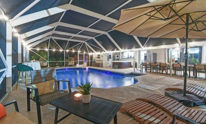 Welcome to the Green House—this spacious 5-bed, 3.5-bath retreat on 2 acres sleeps 18. Enjoy the heated screened-in POOL, JACUZZI, SAUNA, FIRE PIT, alfresco dining, BBQ grill, and outdoor lounging areas. Perfect for family REUNIONS, BIRTHDAYS, small WEDDINGS, or corporate RETREATS up to 50 guests. With 17 beds, there’s space for everyone to relax and enjoy nearby beaches, shopping, and dining. Just 14 miles from PBI airport, it’s the ultimate spot for unforgettable events, relaxation & fun.