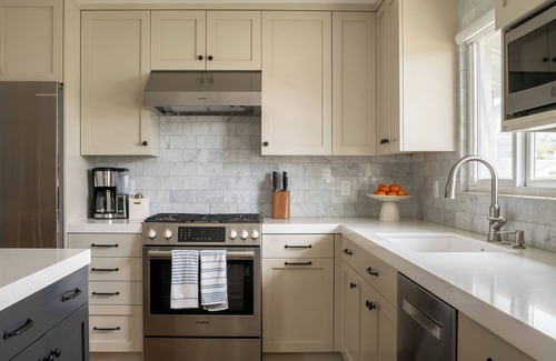 - Open-concept chef’s kitchen with cooking essentials
