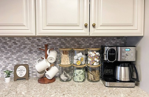 ----- Coffee-bar is located adjacent to the kitchen and includes both a drip & single serve (Kurig-style) coffee maker. Some coffee and cream/sugar are included for guest use.