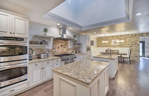 Prepare to be amazed by the stunning gourmet kitchen that’s so impressive, even Gordon Ramsay would be envious! Boasting a sleek design with double ovens, a warming drawer, dual islands with sinks, a copper main sink, a pot filler, and a custom breakfast area, it’s equipped for serious culinary creations. The kitchen also includes a built-in custom stainless-steel refrigerator and a range of top-tier essentials that will make crafting a Michelin-star meal feel effortless: