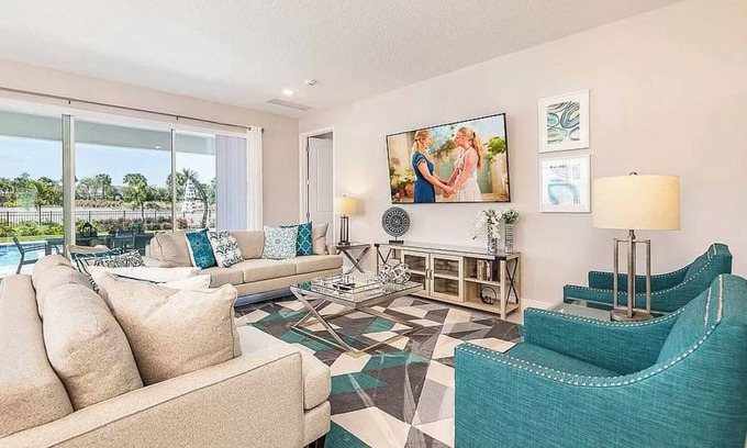 Enjoy Orlando in style in this luxury 8-suite villa, perfect for families and large groups. With modern décor, themed kids’ bedrooms, and multiple living areas, the home offers both comfort and fun. Relax by the private pool, challenge friends in the game room, or enjoy a family meal in the fully equipped kitchen. Located in Kissimmee, just minutes from Disney, Universal, shopping, and dining, it’s the ideal place for an unforgettable vacation.