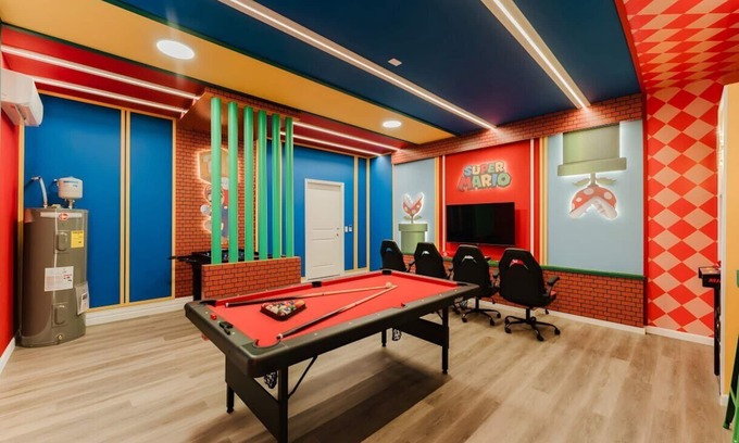 Stay in a brand-new 8BR/6BA luxury villa at Windsor Cay Resort, minutes from Disney. Perfect for families and large groups, this spacious home features a private pool, fully equipped kitchen, stylish living areas, and fun themed bedrooms (Mickey, Star Wars & Princess). Guests also enjoy world-class resort amenities including a lazy river, clubhouse, fitness center, and sports courts. The ultimate Orlando vacation experience.