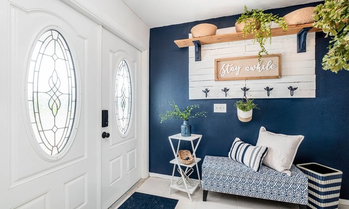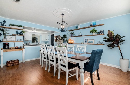 Bluewater Breeze is a luxury home 1 1/2 blocks from the beach and an hour drive to the theme parks of Orlando. Gorgeously decorated with all the amenities you can think of including a tiki Bar, smart tvs in the 3 bedrooms, game room with wii system, foosball and large screen tv, bbq, corn hole, bikes, beach gear and more. This is no ordinary rental with a sparsely equipped kitchen either. There are high end appliances including insta-pot, blender, slow cooker, plenty of dishes and pots and pans and utensils making cooking at home a breeze yet close to lots of great restaurant and night life should you want to go out. Our beaches are beautiful, not crowded and free parking is plentiful should you choose not to walk the block and a half. Its located in a safe quiet neighborhood on a cul de sac. Your luxury beach get away is more affordable than ever!
