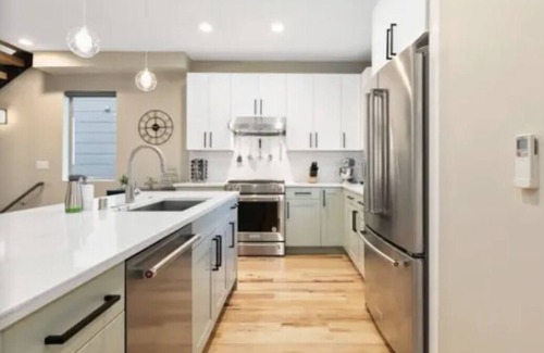 This three year old townhome has 4 floors of living space. Only connected on one side. Upscale furniture - not your typical furnished short term rental!