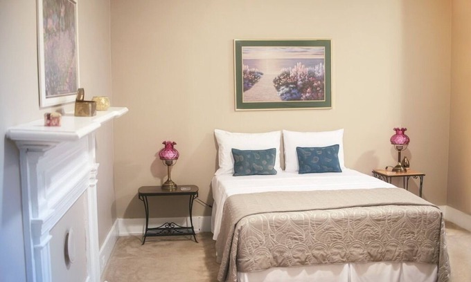 Suites are spacious, comfortable, clean and luxurious yet are in keeping with their original historic character. Your master bedroom suite offer two queen beds with premium bedding, TV, antique wardrobe and desk along with ample seating, luggage rack, wireless high speed internet as well as charging station with speaker and alarm clock. Your generous en suite master bath also includes a full size shower with hair dryer and clothing steamer. A separate dine-in kitchenette includes a dining table, ample seating, microwave and mini fridge.