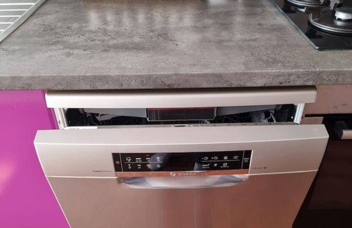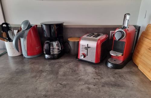 The kitchen is fully equipped with an oven, microwave, dishwasher, washing machine, coffee maker, kettle, toaster, and all the utensils needed for proper cooking.