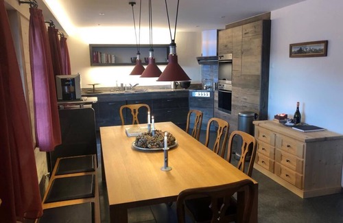 Chalet Solidage is a large apartment with a magic mountain views. All rooms have their own bathrooms and in the basement is a huge Finnish Sauna. An open kitchen and a large dining table invite are the base for unforgettable evenings with family and friends.