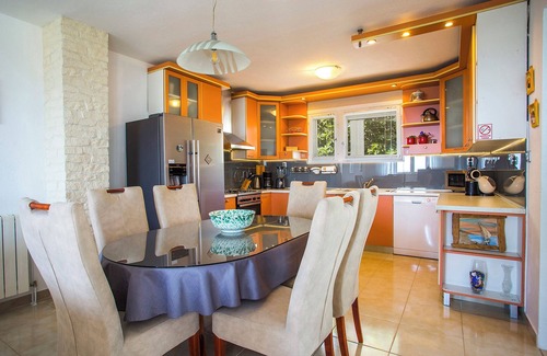 It offers private parking place, heated pool, few different lounge parts, fully equiped kitchen, 2 bathrooms, 2 rooms, barbecue ,table tennis,billiard table.