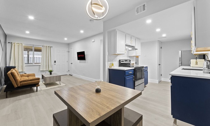 Welcome to our Luxury Apartment in Riverside - a fast-growing and increasingly trendy community right next to Downtown Austin. Our 680 sqft 1-Modern apartment is fully designed and equipped with a fully functional kitchen, magnificent spa vibe XLarge shower space. Dinning table near the beautiful accent wall and a lot more...
