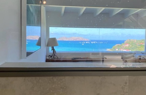Very beautiful brand new cosy and luxury artist penthouse apartment located on the top of a residence overlooking the entire Bay of St Jean, walking access to the beaches ( Nikki, Gypsea, Eden Rock) , restaurants, shops and pharmacy. Stunning views unto the sea , very peaceful, modern kitchen, bathroom, private parking.
