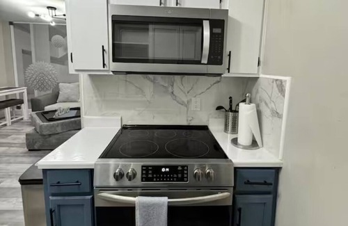 Fully remodeled in 2025, this charming 1-bedroom, 1-bath apartment offers a peaceful retreat with a queen bed, in-unit washer and dryer, a fully equipped kitchen, and a spacious living room featuring cable TV and high-speed Wi-Fi.